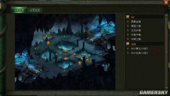 上图中,两处金色的点为BOSS刷新位置,地图上五个绿色的点为棺材所在位置。