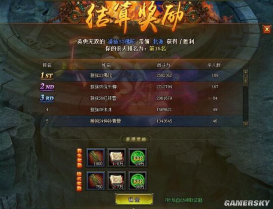胜利的阵容可以胜负奖励,另外,参加活动的玩家根据击杀人数可获得排行奖励,参考下图: