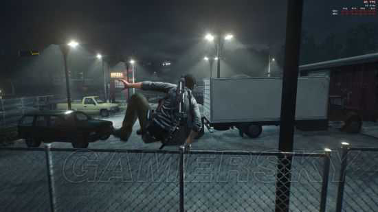 镭射手枪,第三章拿完十字弓后沿着左手边红色的列车车厢前进,走到尽头看见一个上锁的门,打开后翻过蓝色箱子调查尸体: