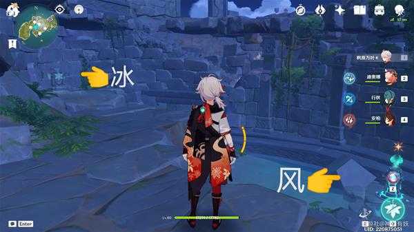 抬头向上看还可以发现石壁上有象征冰元素的符号。