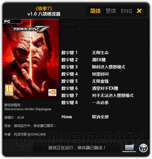 简体、繁体、English,可以切换语言 (切换语言后修改器将把该语言设置为默认语言)