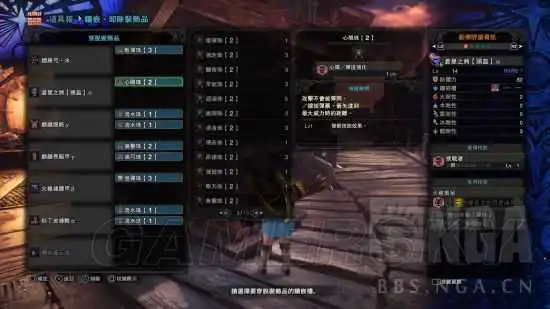 选出技能:攻击类(达人,攻击,超心,挑战者),防御类(体力增强,茸食,耐雷耐火耐瘴等耐性,体术5,耐力上限突破)。