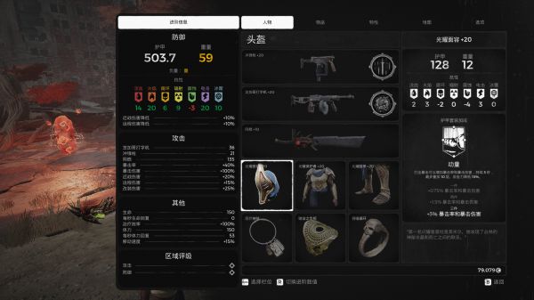 约束带加百分之15减伤,最大血量锁百分之50,入侵者的灾祸,加百分之15减伤害,顺便更拉仇恨,组队的时候还能帮队友缓解点压力,扭曲神像让护甲上一个档次,顺便减点重量。近战武器绑定吸血镰刀,主手和副手随意,我只是觉得单发充能方便点。武装带嚎叫怪的免疫力,和尖刺斗篷。一般来说末日难度都不需要2个武装同时开启,只需要开一个即可,轮流开即可。