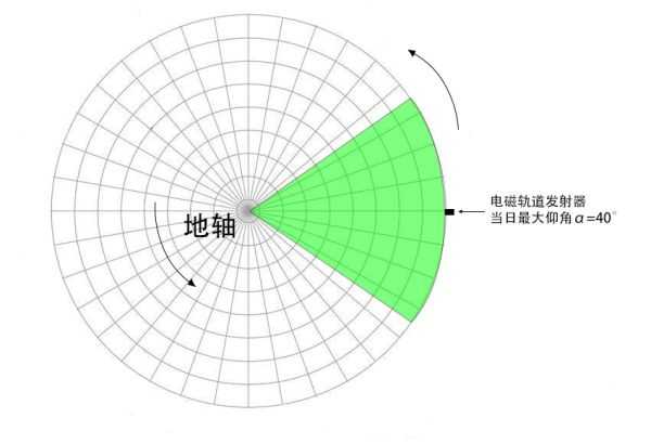 2-1:每个行星日,每个电磁轨道弹射器,都会存在一个角度α,设角度α为:当日最高仰角。