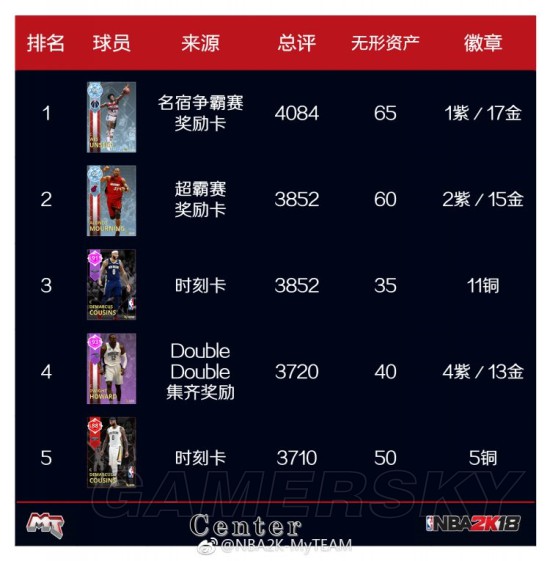 《NBA2K18》发售到现在,MT模式差不多来到了半程,所以简要做个盘点,分别选取5个位置总评排名前15的卡片,给各位玩家做个参考。需要说明的是:总评并不代表实际体验,适合自己打法的卡片才是最好的。当然,每个位置总评第一的卡肯定是毋庸置疑的好卡。