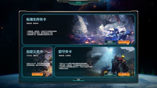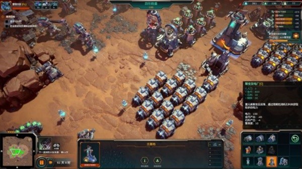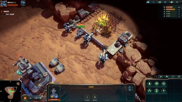 《异星前哨》的游戏包含了两个模式,分别是发展内容比较丰富,可供发展时间也比较长的生存模式,还有发展时间很短、去掉了生产环节、也大幅度简化了造兵环节的防守模式——两者都是要防守10波进攻取胜(也可以消灭地图上的5000个怪物......),我们先来介绍一下生存模式。