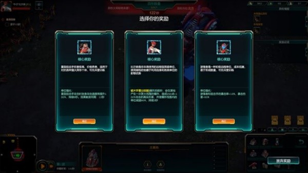 防守模式中芯片的核心强化依然存在,不过对比生存模式中的奖励更多是资源采集相关。防守模式则全是英雄或者兵种的强化了。