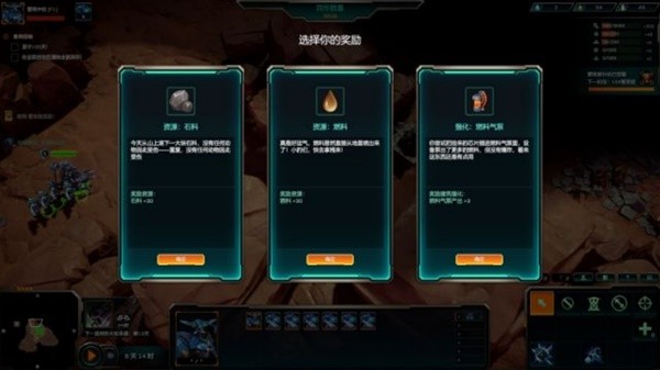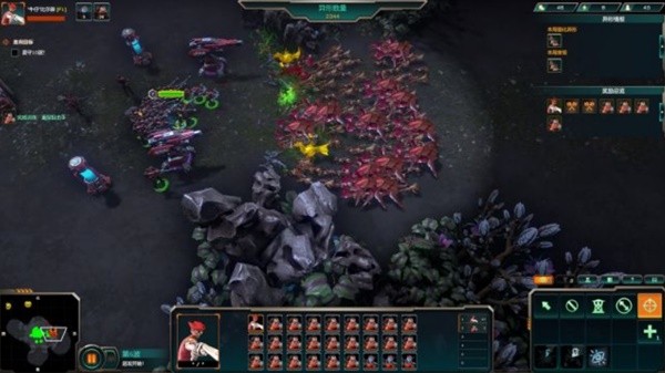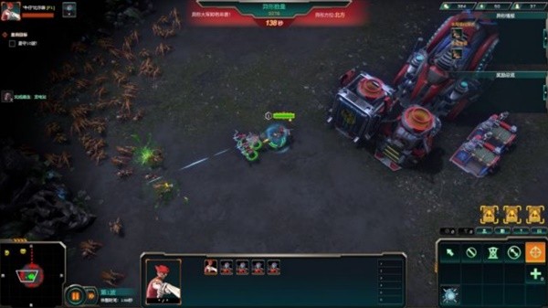 在防守模式下,游戏被简化为4个口出怪,不同于生存模式相对开阔的基地周边和还需要考虑各种矿产分布的势力扩散,只需要把口堵好了,在后面架设炮塔就OK了。然后在防守的间隙用英雄带兵把等级练起来。防守模式下的科技模式也变化了——
