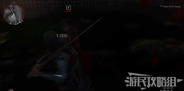 前往下一个目标点,路上会遇到非常多的骷髅兵。来到下图位置,跳到坑里,遭遇BOSS邪恶艾什。