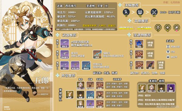 《原神》中的五郎适合玩多岩队,可以打辅助位。下面就为大家带来由“七月的休”分享的《原神》2.3版五郎详细培养指南,希望对大家有用。