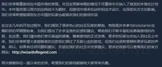 本作由 Contingent99 负责制作与发行,其实整个团队仅由2个人组成,游戏最早在2016年于 Kickstarter 上开启众筹,最终的结果也相当令人满意。这个团队还是非常看重中国市场,一发售就包括简中的!