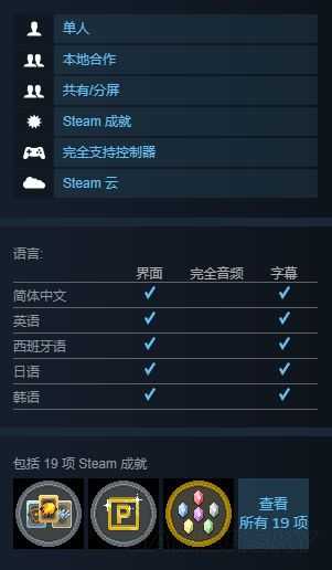 挺贵的游戏竟然连集卡都不带,可惜,游戏一共加起来有16个steam成就,可以说想要全部完成非常有难度的,并没有隐藏成就,对那些喜欢刷成就的,也是增加游戏坚持下去的一项动力。