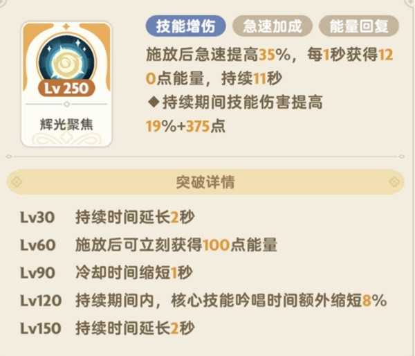 恢复能量,提升技能伤害。