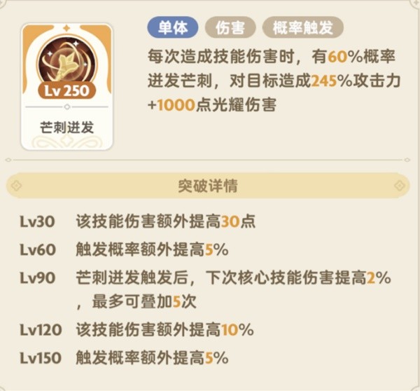 技能伤害概率触发该技能,对目标造成高额伤害。