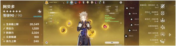 阿贝多:黎明神剑,圣遗物:双磐岩双角斗士(双爆双防御为优,暴击头,防御沙漏)