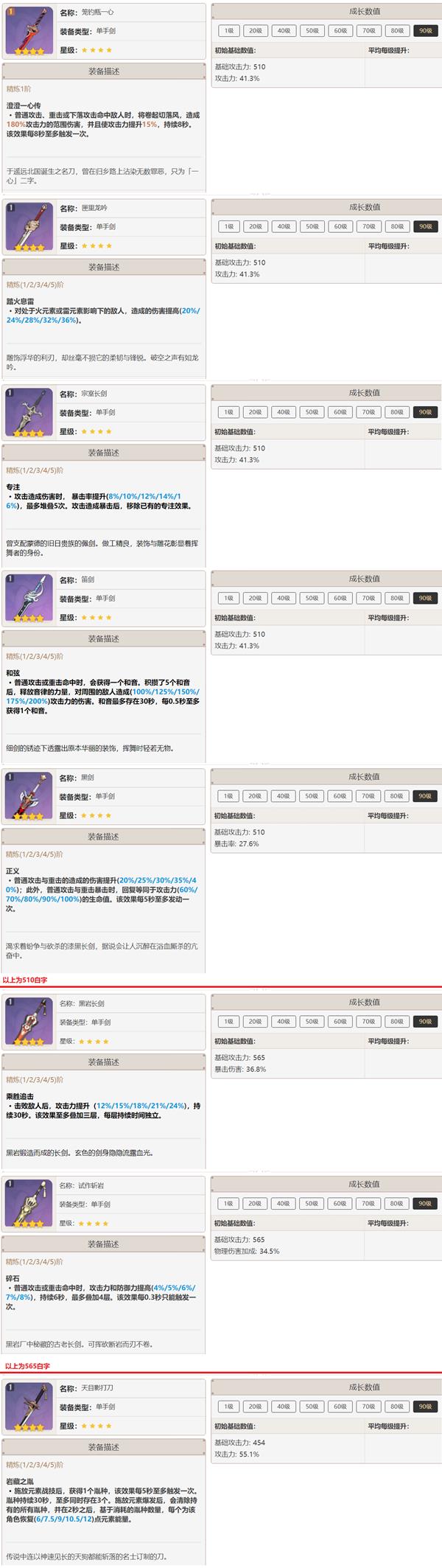 分别为:妖刀、龙吟、宗室长剑、笛剑、黑剑、黑岩长剑、斩岩,以及天目(主要是给绫华用)。