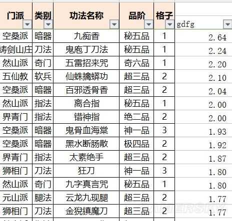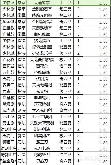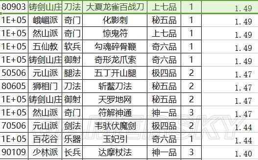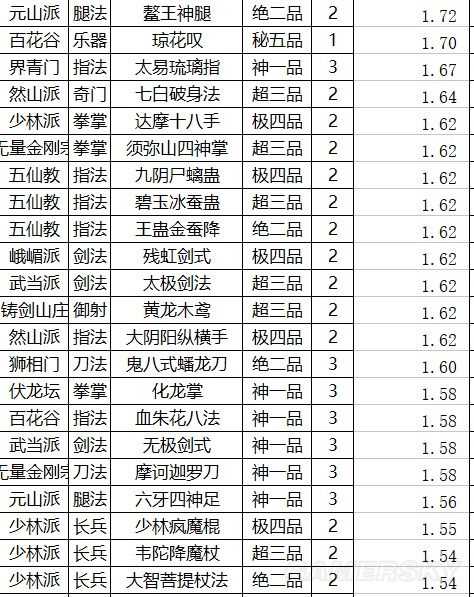排名靠前的基本都是一些本身没什么威力的武功,除了狂刀之外很少有人会用的。但是运功效果非常突出。给个参考,巨阙这种主攻型功法的得分只有1.0,在所有运功效果中处在中下水平。