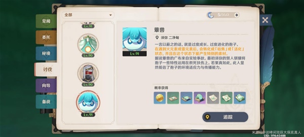 就是讨伐这里点追踪,大世界就能显示点位,但只有几个点位,而且蕈兽比较少。可以应急用。