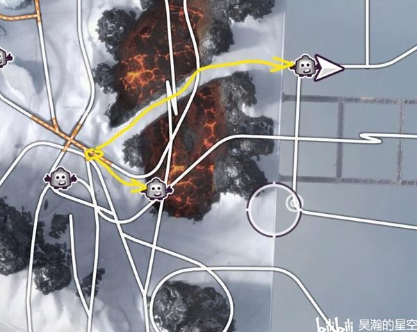 广告牌位置和出发点如图所示,红色箭头表示广告牌比出发地海拔低,黄色箭头表示广告牌与出发地同海拔或海拔高,图中一共是24个广告牌,另外一个在风火轮哨站,那一个太明显了就不放图了。