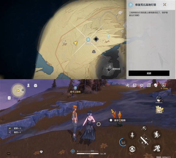 根据任务提示,护送这位工程师上灯塔,为她清理声骸开路。工程师们修复好电路,爬上灯塔操作屏骇入破译。
