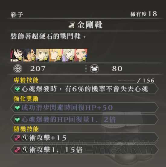 面板参数永远是最值得强化的属性。在附带的随机技能中,攻击力、术攻击、集中力、防御力、术防御+40,最大HP+250是一等技能。但这并不意味这它们是最好的技能,因为强化奖励还有着这样的存在。