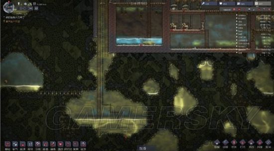 另外再说一下游戏的一个小BUG,氢气发电机不是只吸氢气,而是包括氧气在内什么气都吸,但只有氢气是可以发电的。但基地在一段时间后总是会产生很多二氧化碳,甚至外面渗进来的氯气,而且由于重量更大,这两种气体是会沉在基地的最下方,而这个时候我们也可以在基地最下方同样建设一个吸气泵,用来吸收二氧化碳和氯气,保持基地内健康。