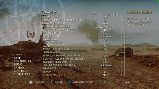 展开《疯狂的麦克斯》是根据同名电影改编而来,游戏已经正式发售了,相信大家对游戏画面效果很好奇,今天小编带来“zctang304”分享的《疯狂的麦克斯》画质设置参数及效果说明,一起来看吧。