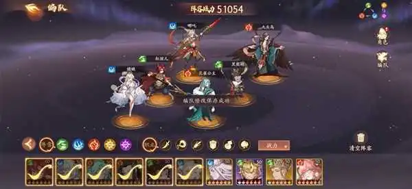 5、没有破防角色,可以用二郎神站前排,因为二郎神比一般输出肉,单体技能还能回血,如果有其他坦克,比如龙王、托塔、阎罗王,但是缺输出的话,二郎神就扔后排去吃嫦娥buff,补输出,前排双盾