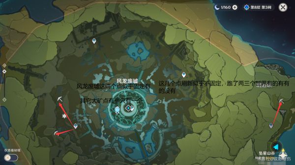 风龙废墟和庆云顶可能受世界等级影响(作者为7),刷新时间等等原因。故风龙废墟给出两个最易获得的点位。