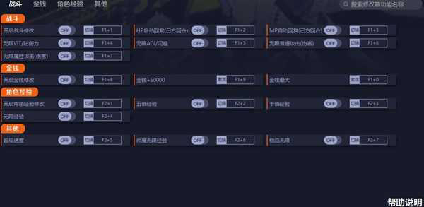 2.开启金钱修改:开启后,打开菜单[F]修改。