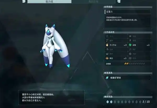 正文 《幻兽帕鲁》秘斯媞娅捕捉位置一览 063秘斯媞娅在那抓 快乐小编 /2025-02-14 21:00:33 /49 浏览量 0214 《幻兽帕鲁》秘斯媞娅是图鉴中的063号帕鲁,它在队伍中时能够提高玩家们的负重,想要捕捉的玩家请看下面《幻兽帕鲁》秘斯媞娅捕捉位置一览,希望能够帮助大家。 能力一览 休使圆蟾照客眠。 捕捉位置 -- 展开阅读全文 --