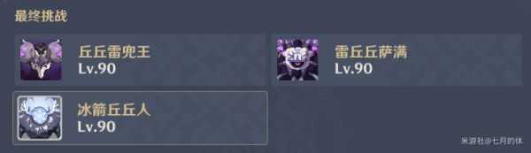 最终挑战的雷牛头,伤害贼高,用神里永冻没什么问题,能冻到死,注意先把两只冰丘丘打了,避免影响到战斗。