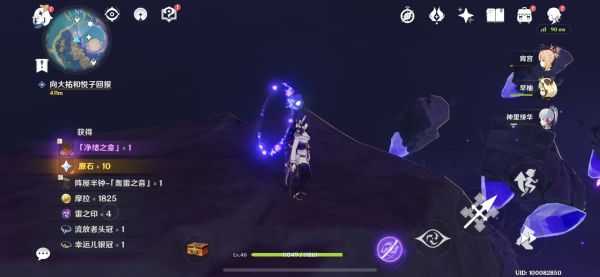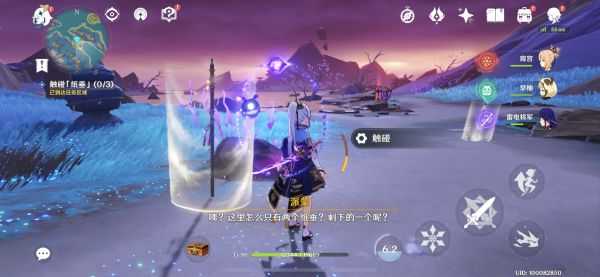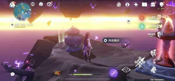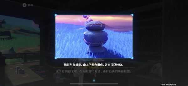 第三组镇石:按照任务来到已经在传送点附近等候的冒险家悦子和大祐身边,此时场地周围没有镇石等信息,不过有之前提过的相位之门,很明显,需要穿过相位之门寻找线索。果不其然通过相位之门抵达的浮空岩上方有大量的雷种子传送点,辗转几次可以来到第三组镇石这里(周围也有很多解谜,不着急可以以后再做)。