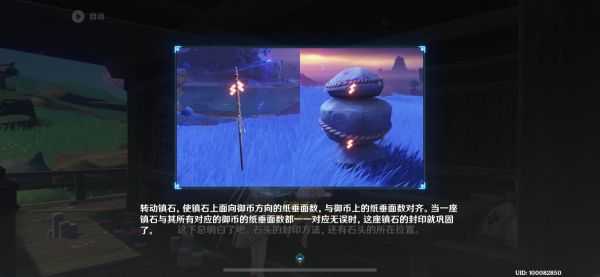 通过雷种子来回穿梭解锁纸垂后,回到传送点,镇石的对应朝向如下图所示即可完成: