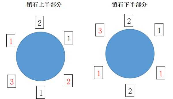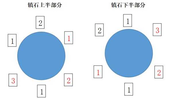 镇石的对应朝向如下图所示即可完成: