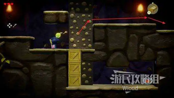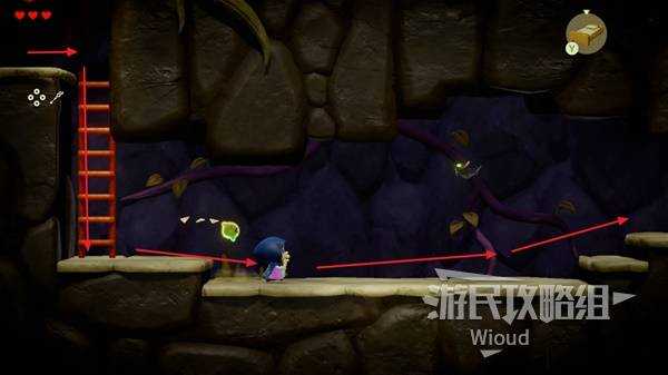 右侧尽头的两只泥怪可以放置一个海胆等待它们自杀,爬右侧的楼梯离开洞窟。
