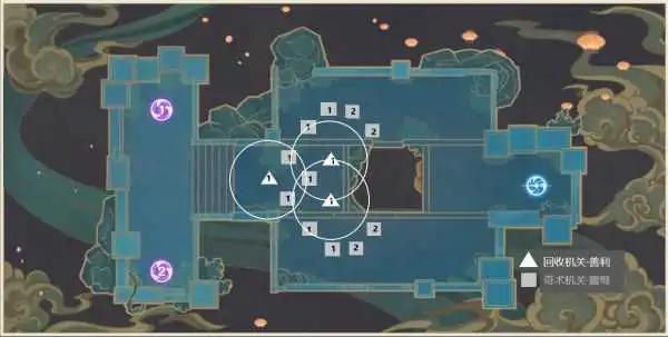 虽然怪物花里胡哨,但是震弩yyds!刚开始先摆好标1的机关,并在第一轮结束前摆好标2的机关,之后就可以快乐抽签咯。