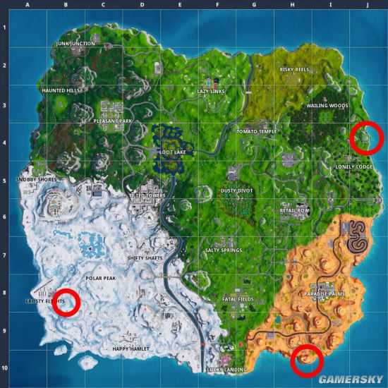 《堡垒之夜》RV王冠,金属乌龟,潜艇位置一览,第七赛季第一周任务要求在王冠,金属乌龟,潜艇位置跳舞,那么这些位置在哪呢,一起来看看吧!