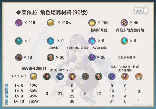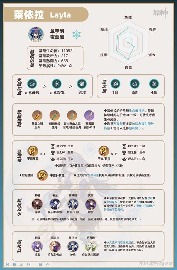 《原神》3.2下半上线了新的四星冰属性角色——莱依拉。下面请看由“Asgater”带来的《原神》莱依拉全面培养攻略,包含莱依拉天赋介绍与出装、配队指南,希望对大家有用。