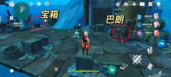 击败营地中的丘丘人,解救巴朗。旁边还有一个宝箱。