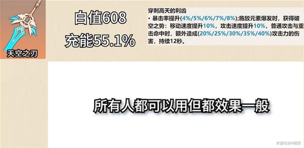 天空之刃,五星级单手剑。90级基础攻击力608,元素充能效率55.1%。