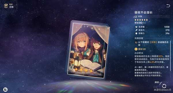 这是丰饶里特别一点的光锥,提高效果抵抗,可以让奶妈不容易被控制,同时还能提升治疗量。