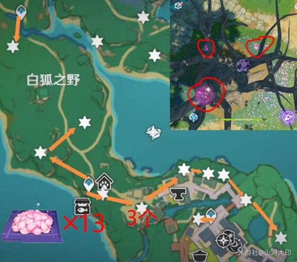 《原神》4.3版本将会返场五星冰属性角色神里绫华,而神里绫华在突破时需要用到绯樱绣球。下面就为大家带来由“山河大印”分享的《原神》神里绫华突破材料绯樱绣球采集路线,希望对大家有用。
