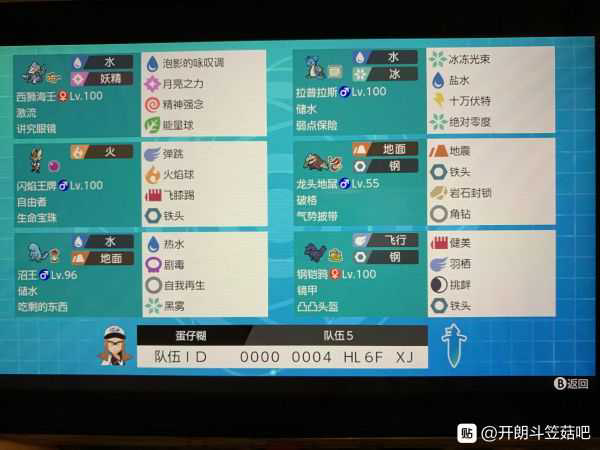 基本配置就是乘龙西施或者乘龙加任意地(逼对面触发弱测)打首发,后排看选沼王火主什么的。对面有弱测手也可以乘龙沼王首发,直接乘龙极巨化然后沼王黑雾,接着就是打联防抓人就好了。