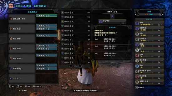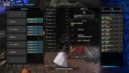 跟上面那个配装是同理的,蓄力炮打出去也不关你攻击面板什么事,要加就加那点第一次戳出去的平A伤害,低的可怜,还不如保证输出的稳定,所以不是很推荐没事叠面板玩。由于需要戳出第一枪,所以保证心眼不弹刀也是必要的,集中同理是加龙击炮速度的,回避性能用熟了谁用谁都说好。炮弹up和防强就不解释了,至于耐冲,说是防队友双刀类的,其实我才不会告诉你我是不知道改出啥了,大家拿去自己调调看吧。