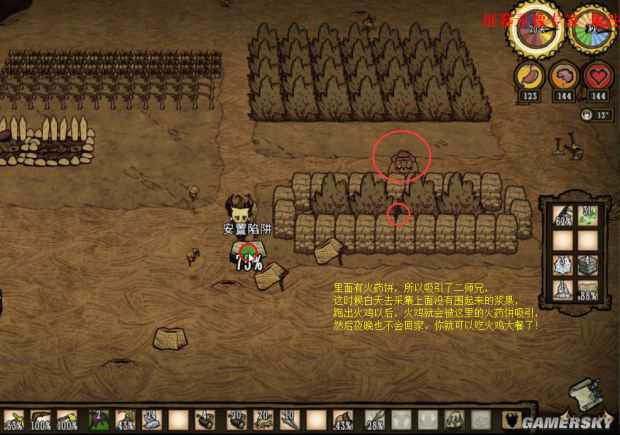 因为白天采集浆果的时候,有几率从浆果里面出现火鸡,所以就有了这个火鸡农场。所谓火鸡农场,就是“养火鸡”,怎么养的?这里需要一个神器,