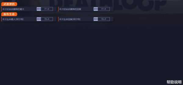 2.本次初始武器弹药最大/弹药回复:为本次关卡开始时手持武器的弹药,进入关卡使用,重启关卡时重置。