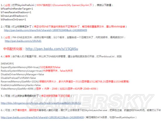 1.高版本enb都会要求修改我的文档下的两个ini,如果你使用过什么优化补丁,建议删除,因为enb的作者不会使用这些东西。尤其是第一行内容,如果那个是0,进游戏会提示你,请修改的。