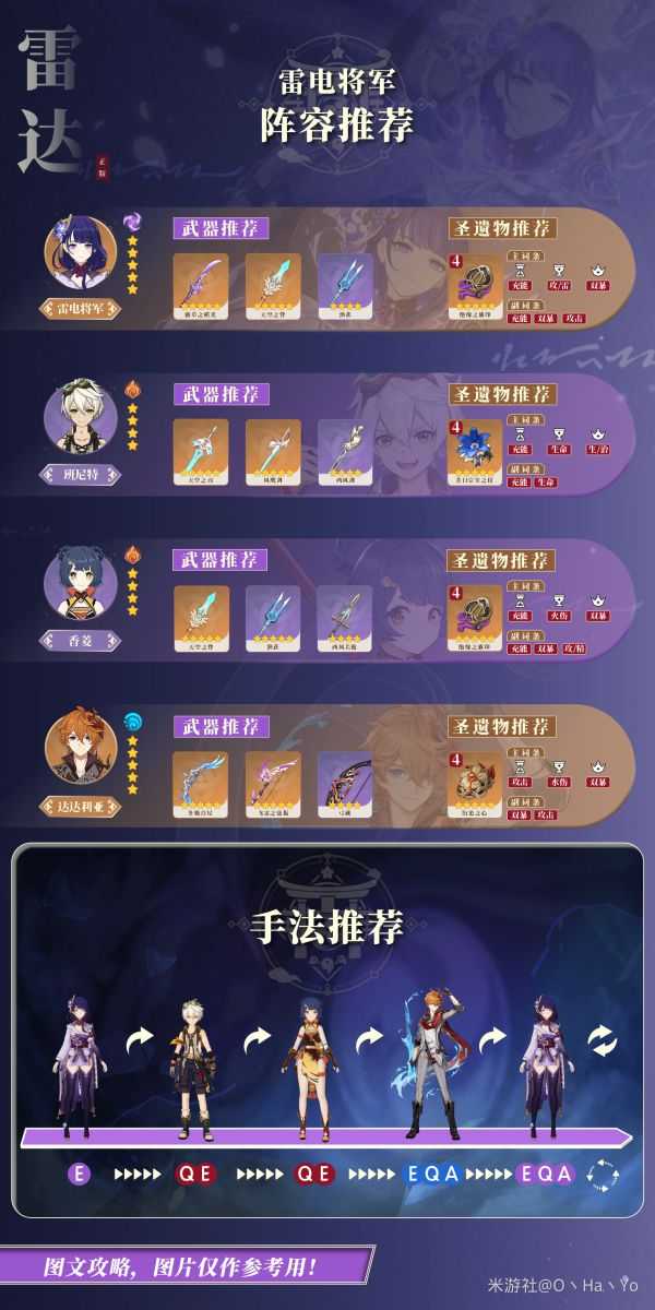 该阵容在循环性上表现出色,毕竟雷神嘛,全队回能这个机制确实挺不错,但是在输出方面的话其实中规中矩,达达利亚的阵容搭配输出最佳的搭配还是“万达(万叶+达达利亚+班尼特+香菱)”,这也是在未拥有枫原万叶的时候可以使用的阵容。