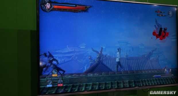 刚来到微软的展台时,这款作品相比左右两边的作品要更加吸引我。纯粹的视觉表现与横版动作的硬派风格在如今的业界里算是比较少有的,而本作的题材还是中国文化特有的武侠题材。